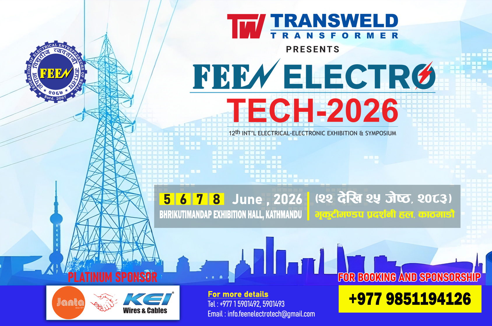 “फिन इलेक्ट्रो टेक २०२४” यही मिति २०८३ साल जेष्ठ २२ गतेदेखि २५ गतेसम्म भृकुटी मण्डप प्रदर्शनी हल, काठमाडौंमा